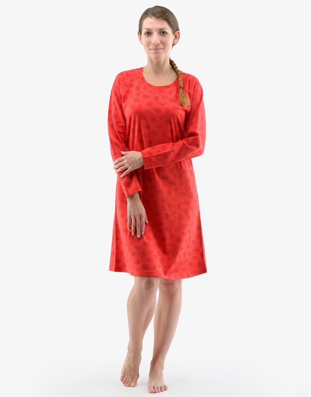 dámské košilka noční dámská dlouhý rukáv 19133P červená martini M