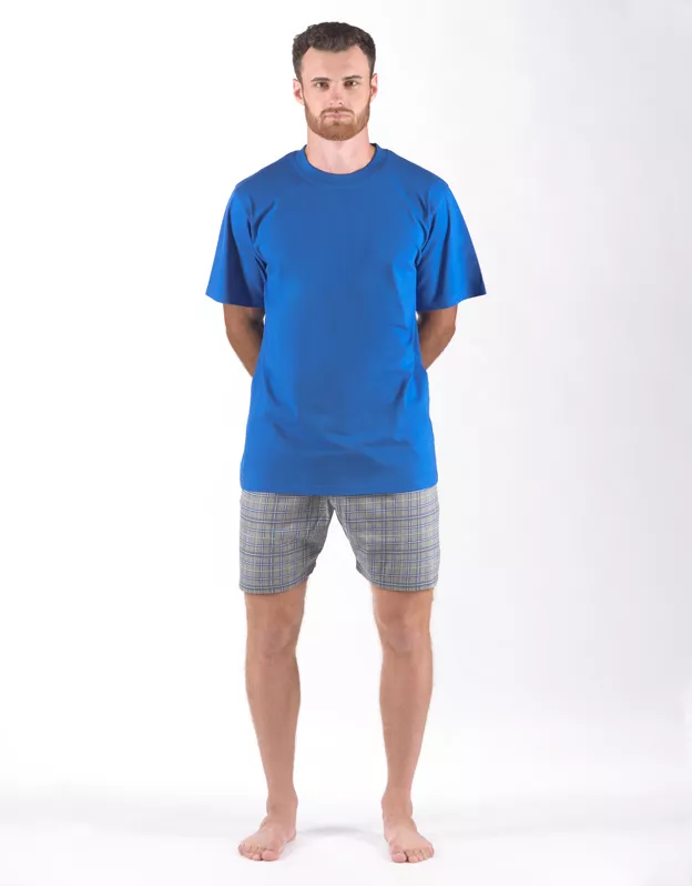 pyžamo krátké pánské, šité, s potiskem značky GINA, kód 79168. Složení: 100% BavlnaPánské pyžamo volného střihu z jemného úpletu Vám poskytne pohodlí během spánku. Krátké kalhoty s oblíbeným vzorem káro doplňuje jednobarevné triko s krátkými rukávy..